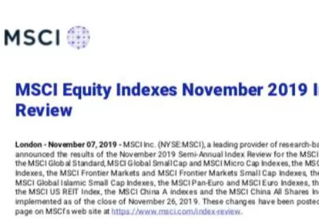 11月8日晨間,明晟(MSCI)正式宣布了指數(shù)季度調(diào)整結(jié)果,同時(shí)將實(shí)施此前宣布的中國(guó)A股在MSCI新興市...