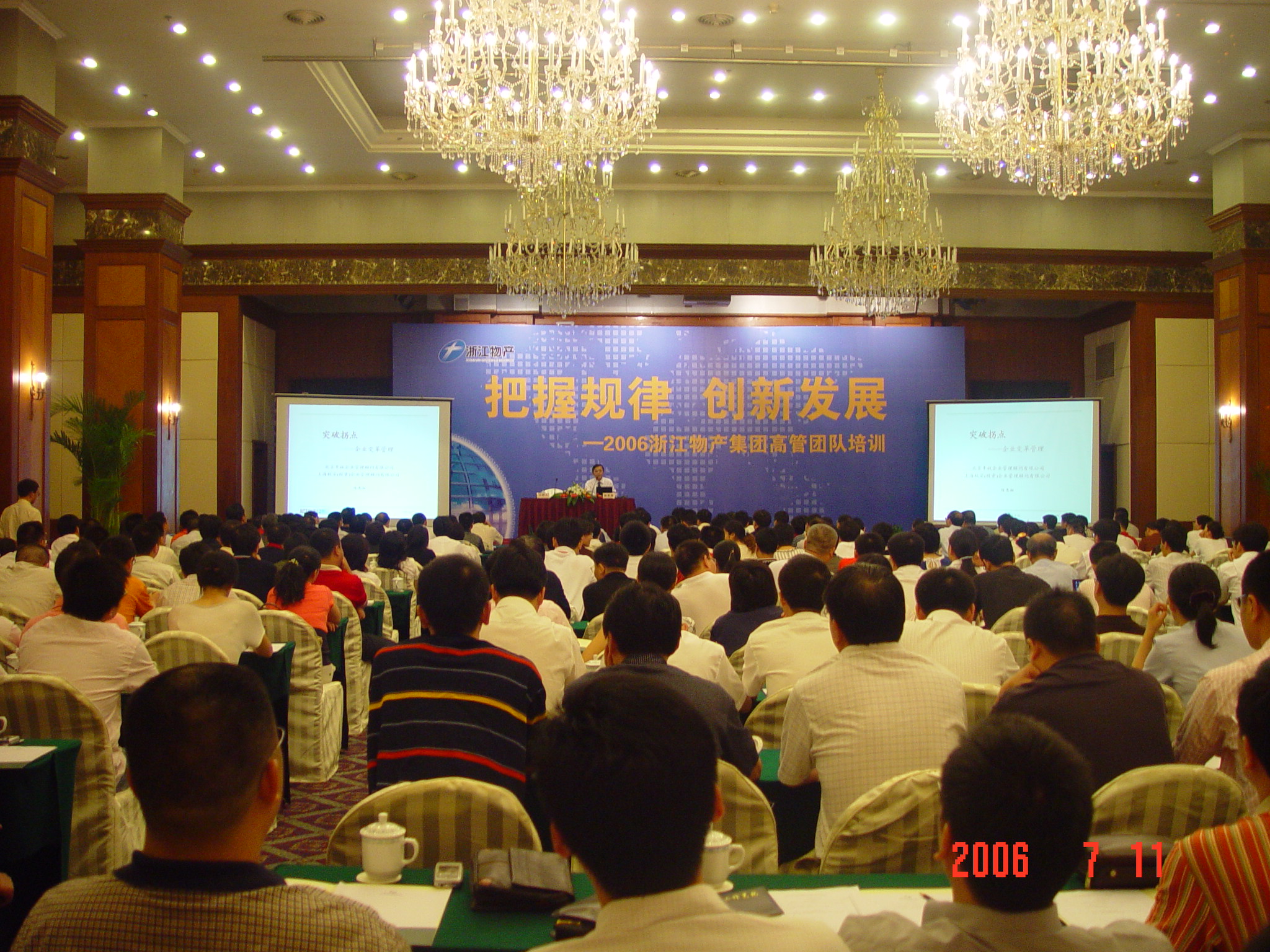 3天時間,300多人,3位國內(nèi)知名的專家學者,3場精彩的講座。7月11-13日,集團2006年度高管團隊成員培訓班在杭州舉行。來自集團公司和各成員單位的高管團隊成員、中層以上骨干和集團總部全體員工在杭州五洲大酒店參加了為期兩天的集中培訓,分別聽取了陳惠湘、芮明杰和王重鳴三位國內(nèi)知名學者、專家所作的精彩講演。