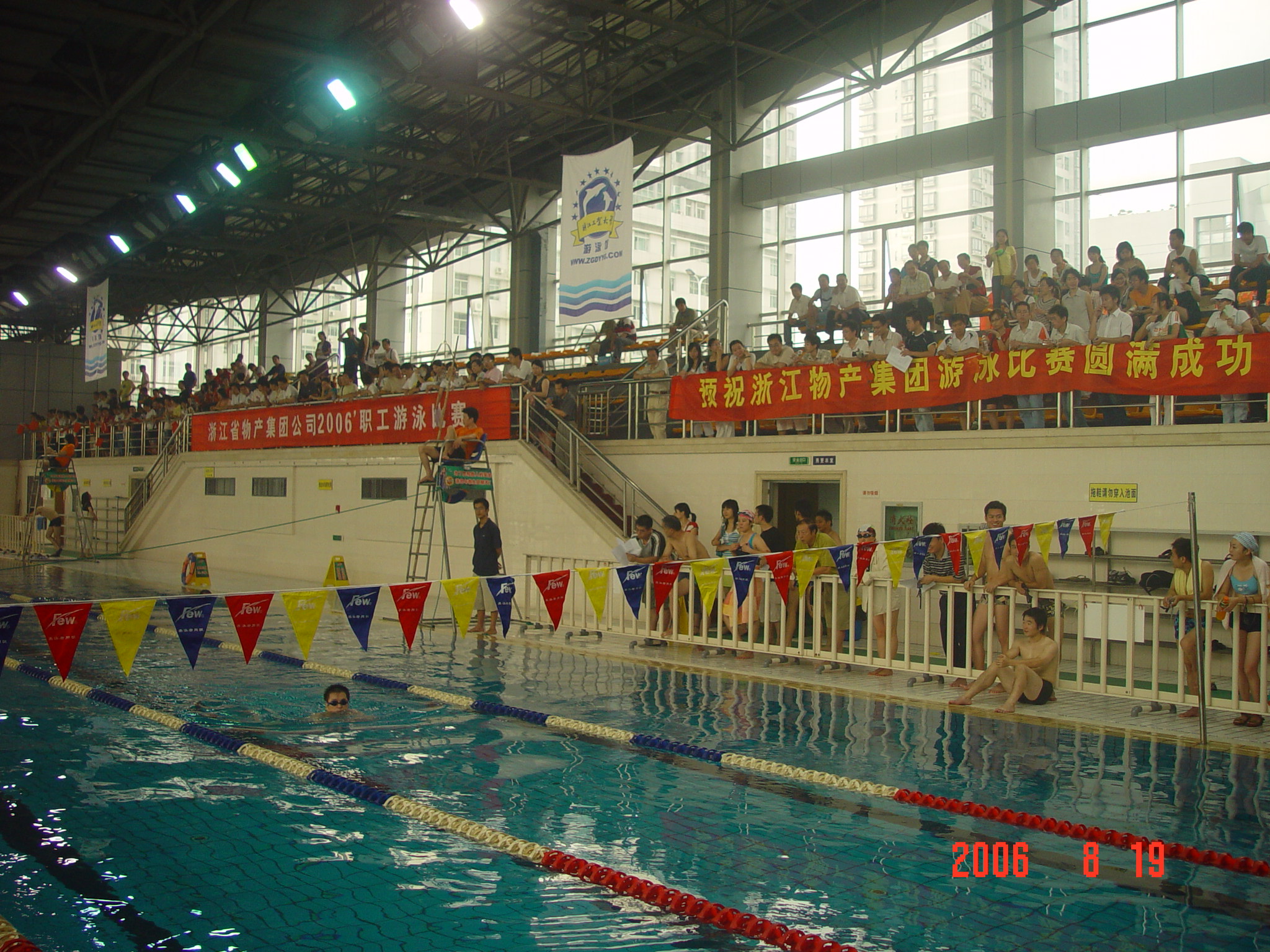 由集團(tuán)工委舉辦的“浙江省物產(chǎn)集團(tuán)公司2006‘職工游泳比賽”,8月19日上午在浙江工業(yè)大學(xué)游泳館拉開帷幕。經(jīng)過半天異常激烈的爭奪,最后,物產(chǎn)元通、物產(chǎn)金屬、物產(chǎn)國貿(mào)、浙經(jīng)院、集團(tuán)總部、物產(chǎn)國際貨運(yùn)分獲團(tuán)體總分第一至六名。集團(tuán)黨委副書記、工委主任隋劍光親自參加了比賽并為獲獎(jiǎng)單位頒獎(jiǎng),集團(tuán)總部及成員單位的有關(guān)領(lǐng)導(dǎo)觀看了比賽。