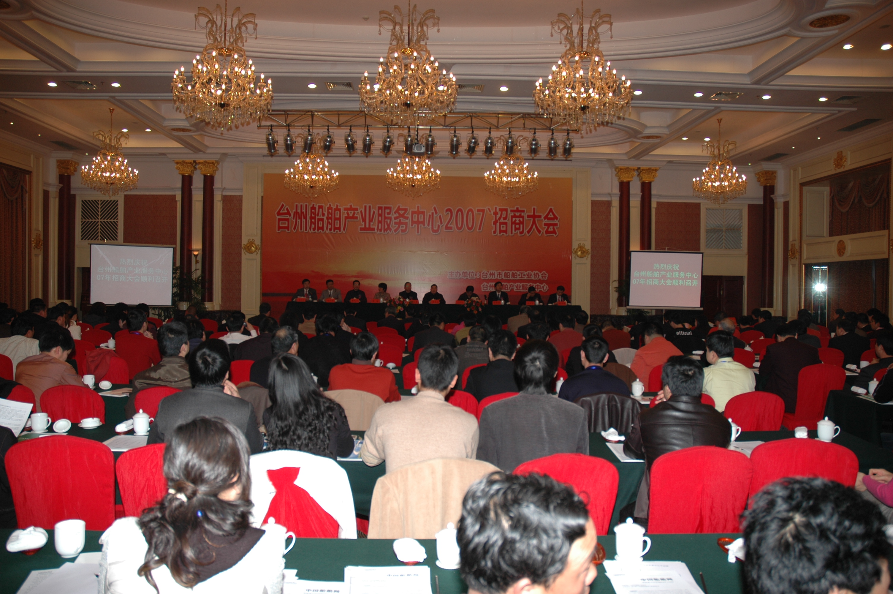 由臺(tái)州市船舶協(xié)會(huì)、臺(tái)州船舶產(chǎn)業(yè)服務(wù)中心聯(lián)合舉辦的“臺(tái)州船舶產(chǎn)業(yè)中心招商大會(huì)”近日在臺(tái)州舉行。大會(huì)邀請(qǐng)了臺(tái)州市人民政府、浙江省物產(chǎn)集團(tuán)公司、臺(tái)州市經(jīng)委、椒江區(qū)政府、臺(tái)州船舶工業(yè)協(xié)會(huì)、臺(tái)州市港航管理局、臺(tái)州市海事局、中國(guó)銀行臺(tái)州分行以及當(dāng)?shù)?0多家船廠和浙江、江蘇、安徽、山東等省的120余家船用品企業(yè)和船研所、船級(jí)社、擔(dān)保公司、中國(guó)船舶網(wǎng)等相關(guān)機(jī)構(gòu)和媒體,約200多名代表參加招商大會(huì)。
