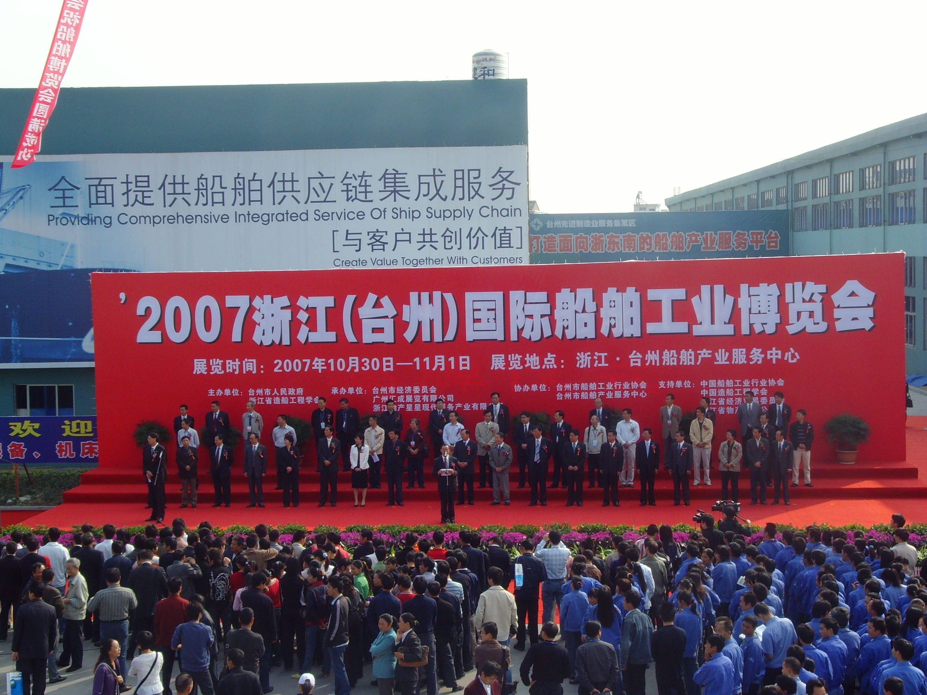 10月30日至11月1日,“2007浙江(臺(tái)州)國(guó)際船舶工業(yè)博覽會(huì)”在我集團(tuán)臺(tái)州先進(jìn)制造業(yè)服務(wù)集聚區(qū)船舶產(chǎn)業(yè)服務(wù)中心隆重舉行。中國(guó)船舶工業(yè)總公司原總經(jīng)理、中國(guó)船舶行業(yè)協(xié)會(huì)造船學(xué)會(huì)名譽(yù)理事長(zhǎng)王榮生,中國(guó)船舶重工總公司原總經(jīng)理、中國(guó)造船工程學(xué)會(huì)理事長(zhǎng)、全國(guó)政協(xié)常委黃平濤,浙江省政協(xié)副主席張蔚文,省委政法委副書(shū)記、省造船工程學(xué)會(huì)理事長(zhǎng)夏阿國(guó),省經(jīng)貿(mào)委副主任王素娥以及我集團(tuán)公司董事長(zhǎng)胡江潮等領(lǐng)導(dǎo)應(yīng)邀出席了開(kāi)幕式。