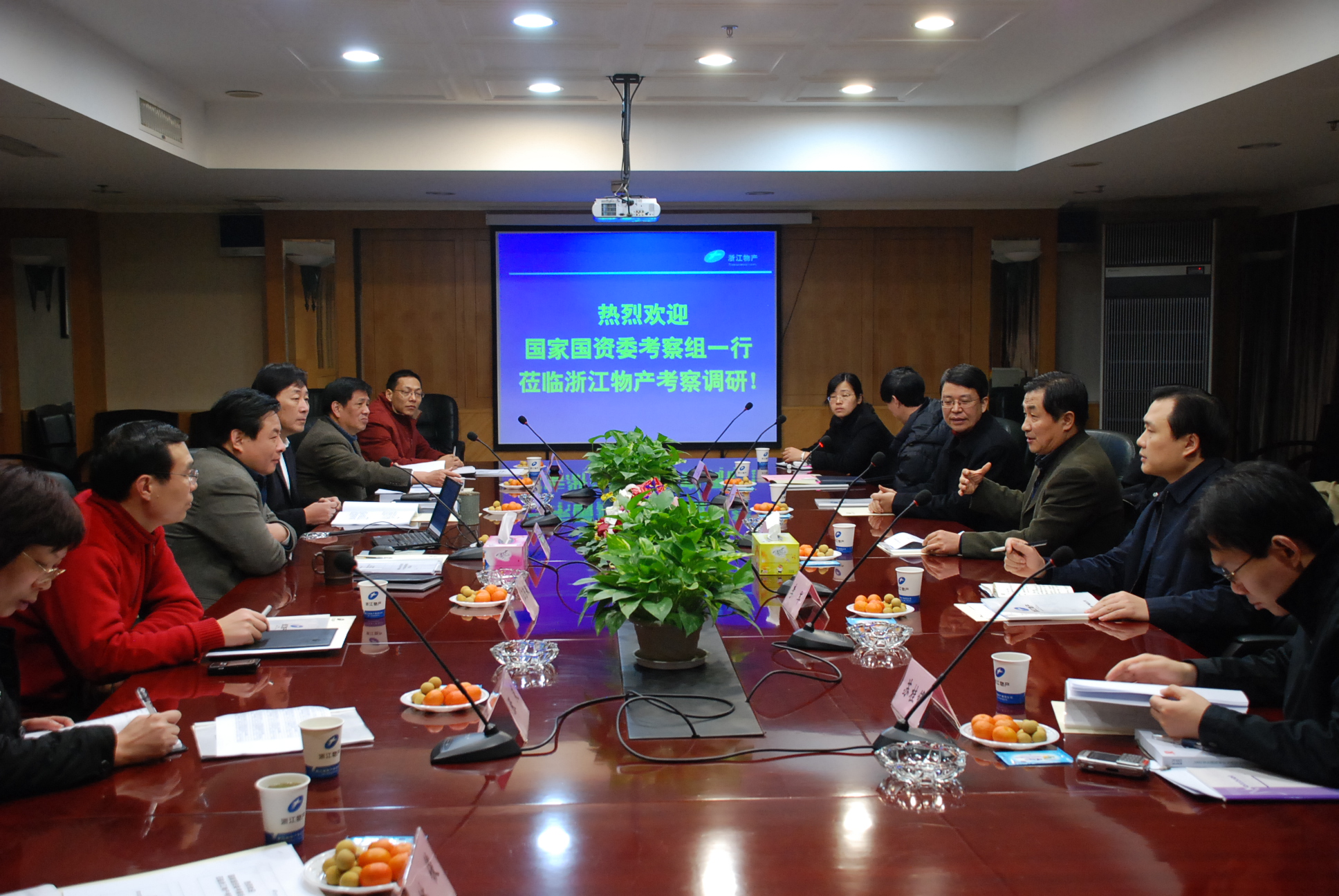1月23日,以國務(wù)院國資委企業(yè)改革局副巡視員周放生(右三)為組長的國務(wù)院國資委考察組一行,在省國資委有關(guān)人員的陪同下專程前來我集團公司考察調(diào)研??疾旖M認真聽取了集團公司黨委書記、董事長胡江潮代表集團所作的工作匯報,并對浙江物產(chǎn)集團在推進流通產(chǎn)業(yè)化、深化企業(yè)改革、完善公司法人治理、加強企業(yè)領(lǐng)導(dǎo)班子自身建設(shè)和企業(yè)文化建設(shè)等方面工作以及企業(yè)EVA情況等進行了深入調(diào)研了解?! 。〒?jù)集團報)