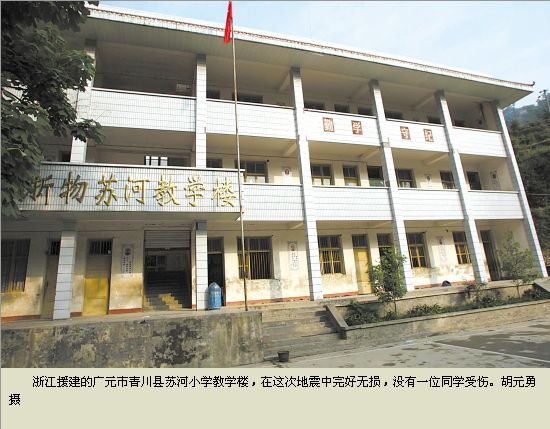 廣元654所學(xué)校,在地震中共有366名學(xué)生、30名教職工遇難。所以,在“廣元接受浙江支援廣元抗震救災(zāi)領(lǐng)導(dǎo)小組”辦公室副主任孫潮泉眼里,盡管浙江援建的51所學(xué)校有的也成了危房,但在校師生“一個(gè)都不少”,是一件“了不得”的事。廣元市教育局副局長(zhǎng)向聰蘭認(rèn)為,建設(shè)過(guò)程中對(duì)教學(xué)樓質(zhì)量的嚴(yán)格把關(guān),為孩子們贏得了寶貴的逃生時(shí)間。浙江援建的希望學(xué)校,包含著浙江人民對(duì)廣元的深情厚誼,如果真倒了,學(xué)生出事了,我們是要愧對(duì)浙江人民的。向聰蘭說(shuō)。