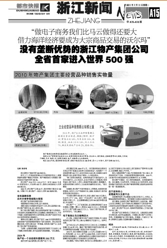 沒有壟斷優(yōu)勢的浙江物產(chǎn)集團公司全省首家進入世界500強
